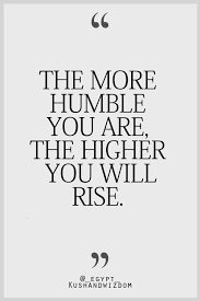 Being humble is when you show love/care for someone and they feel happy to have you. Another thing is that when your humble you show dignity, your respectful and you don't let others hurt you because your just being yourself. I would apply this new way into my life because I'm going to show the world how successful I can be. Some may disagree and agree with me but I'm not going to let the negative stuff get in my way. Being humble is actually a good thing because it can take you far. Just like the quotes says, "The more humble you are the higher you will rise." To me this quote actually motivates me because sometimes we don't show how humble we are because we are afraid but you shouldn't. Be yourself and don't let others take advantage of you because at the end of the day your going to regret it. Don't change who you are for other things that aren't as important as your future and you happiness.