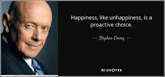 This new habit is trying to teach us how we should be more active in life because at the end of the day we decide who we want to become. Our actions play a big role in our life because we choose what is best for us, even if sometimes we may be wrong but that doesn't stop us. Have some courage and happiness in your life, always make the right choices. We has young teenagers always try to be right and make the correct choices but sometimes it doesn't turn out that way and we may cause some problems. No one else holds the key to our future but us, so we need to do active and aware of our decisions. Being proactive means that you should be doing something positive in your life instead of wasting your time be lazy and not knowing anything. That's why there's a reason why we have to attend school and it's because we need to learn something that will prepare us for our future. Another thing is that we should learn from our mistakes and if you're proactive you should make your own circumstances, instead of waiting for other. The quote at the right is telling us how happiness and unhappiness are a proactive choice and nothing changes between the two only we can make it change if we decide to do it.